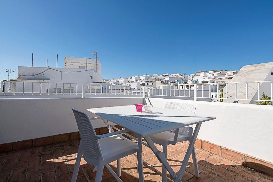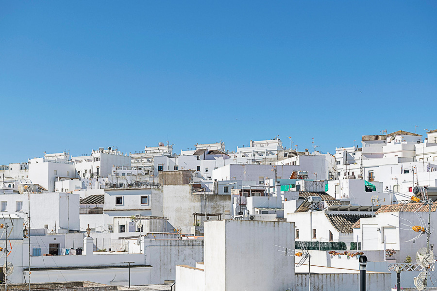 Casa Marina, managed exclusively by Califa Casas, is a two-bedroom house in the old town of Vejer. Its private roof terrace overlooks the old town white facades.